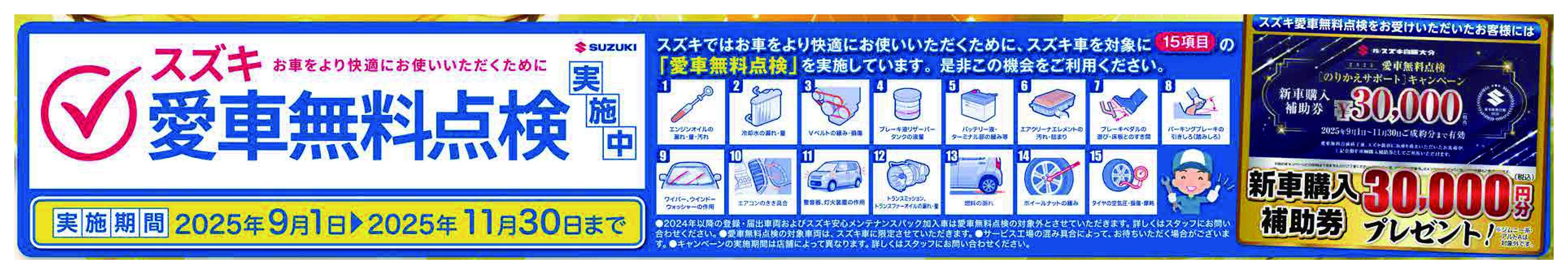 誠に恐れ入りますが、上記期間中、お車の急な故障や事故の際には