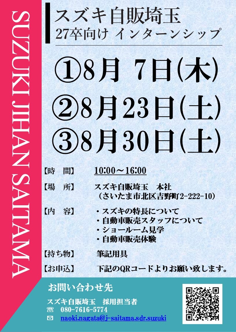 スズキ自販埼玉の採用担当です