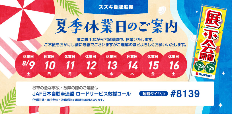 本ブログは、滋賀県内でスズキ車の販売・メンテナンスを手がける「スズキ自販滋賀」が執筆しています。地域密着の正規ディーラーとして、最新モデルの情報発信や試乗・購入サポート、アフターサービスまで幅広く対応。お客様一人ひとりに寄り添い、安心で快適なカーライフを全力でサポートしています。スズキ車のご相談は、ぜひスズキ自販滋賀にお任せください。
