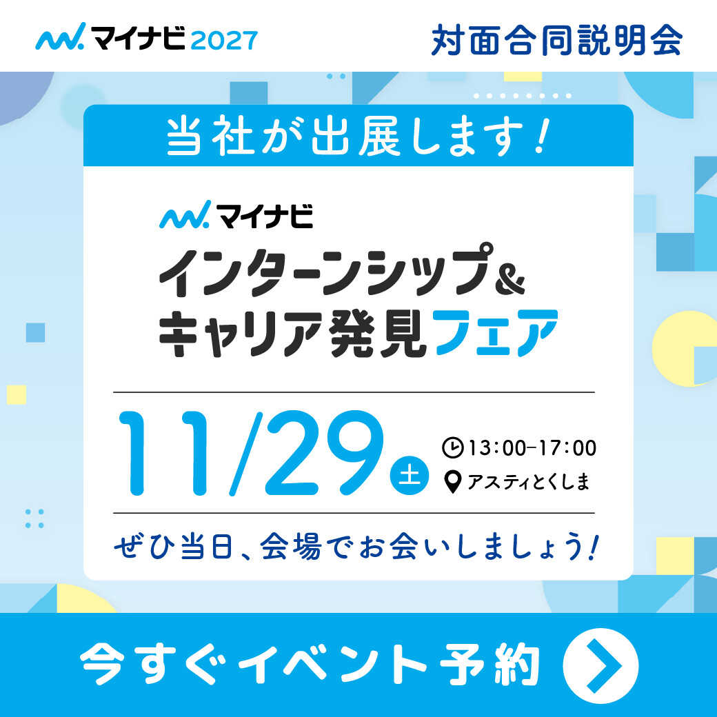 この度当社はマイナビ2027主催【11月29日 インターンシップ&キャリア発見フェア 徳島会場】へ出展します!