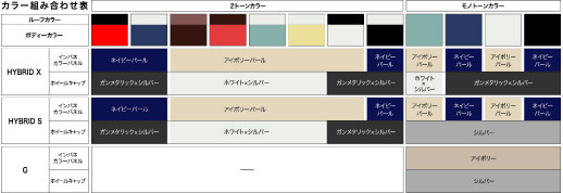 内装色などの組み合わせが