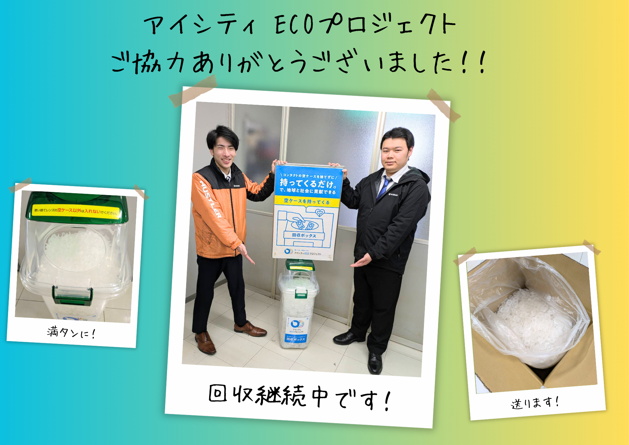 コンタクトレンズ専門店 アイシティ が実施しているアイシティ ecoプロジェクト へ送付いたしました。