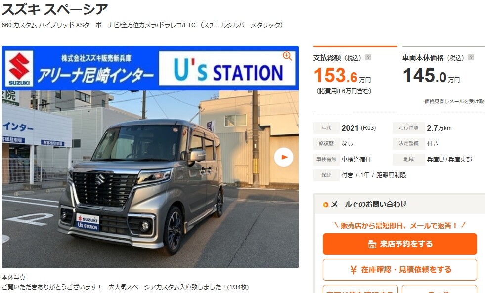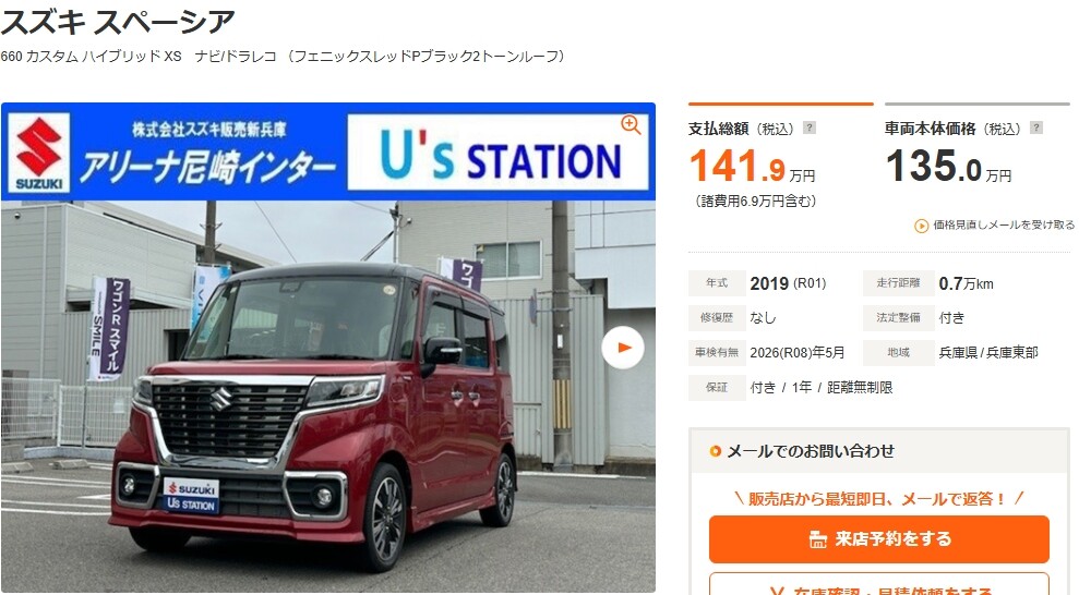 スペーシア 660 カスタム ハイブリッド XS ナビ/ドラレコ(兵庫)の中古車詳細 | 中古車なら【カーセンサーnet】