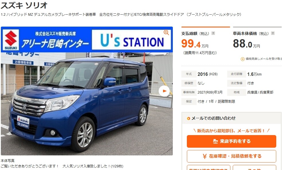 ソリオ 1.2 ハイブリッド MZ デュアルカメラブレーキサポート装着車 全方位モニター付ナビ/ETC(兵庫)の中古車詳細 | 中古車なら【カーセンサーnet】