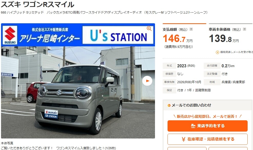 ワゴンRスマイル 660 ハイブリッド Sリミテッド バックカメラ/ETC/両側パワースライドドア(兵庫)の中古車詳細 | 中古車なら【カーセンサーnet】