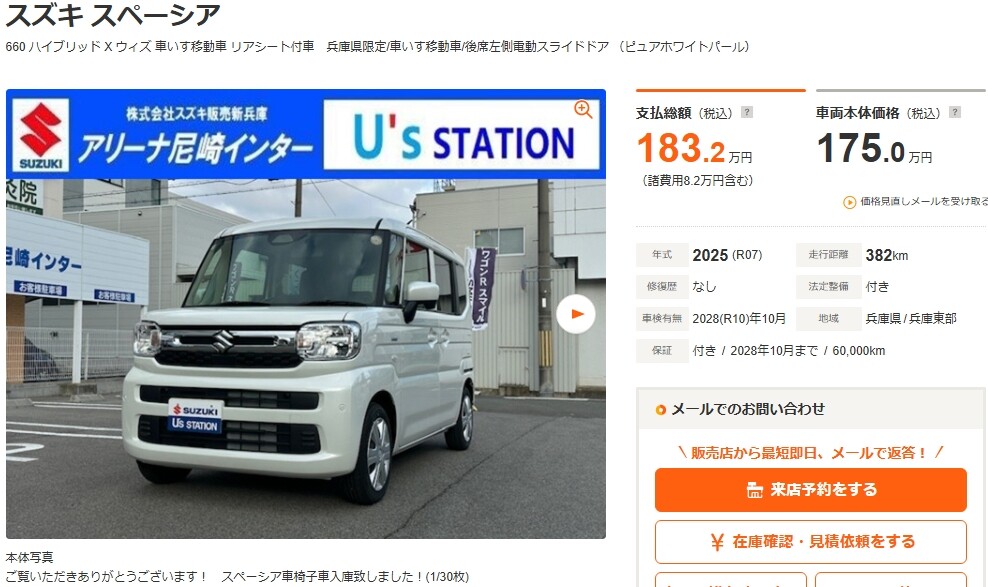 スペーシア 660 ハイブリッド X ウィズ 車いす移動車 リアシート付車 兵庫県限定/車いす移動車(兵庫)の中古車詳細 | 中古車なら【カーセンサーnet】