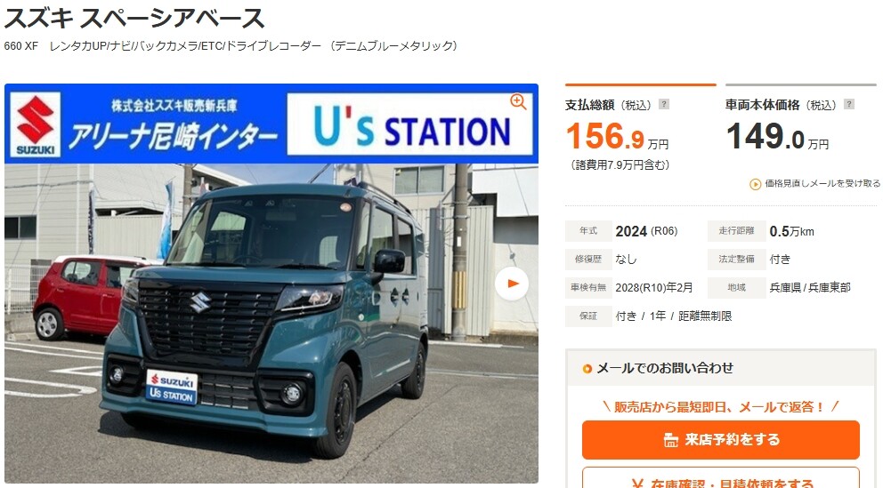 スペーシアベース 660 XF レンタカUP/ナビ/バックカメラ/ETC(兵庫)の中古車詳細 | 中古車なら【カーセンサーnet】