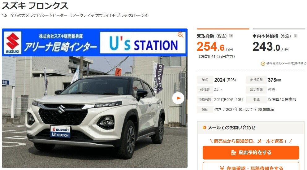 フロンクス 1.5 全方位カメラナビ/シートヒーター(兵庫)の中古車詳細 | 中古車なら【カーセンサーnet】