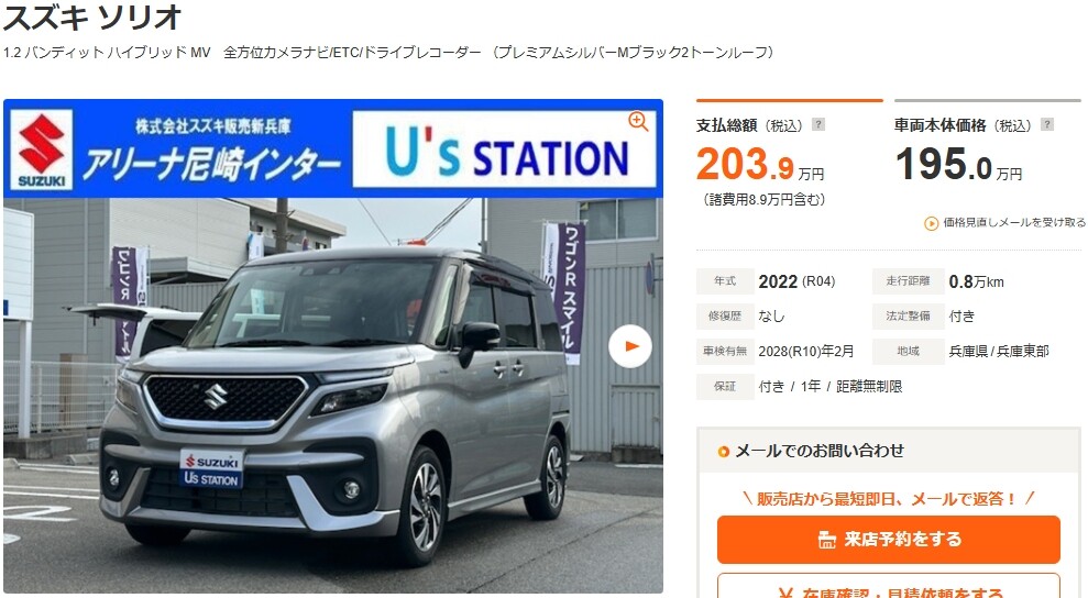 ソリオ 1.2 バンディット ハイブリッド MV 全方位カメラナビ/ETC/ドライブレコーダー(兵庫)の中古車詳細 | 中古車なら【カーセンサーnet】