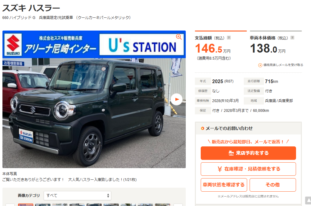 ハスラー 660 ハイブリッド G 兵庫県限定/元試乗車(兵庫)の中古車詳細 | 中古車なら【カーセンサーnet】
