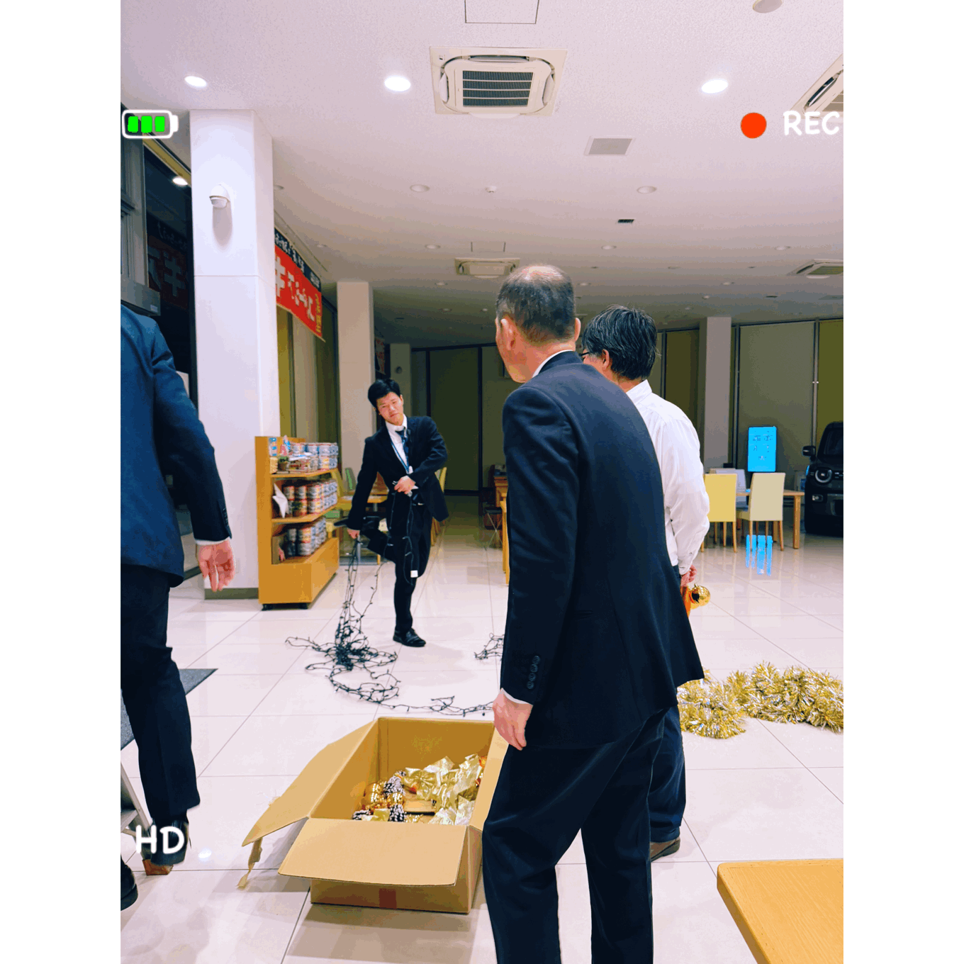 店長シバノが飾りを破壊して