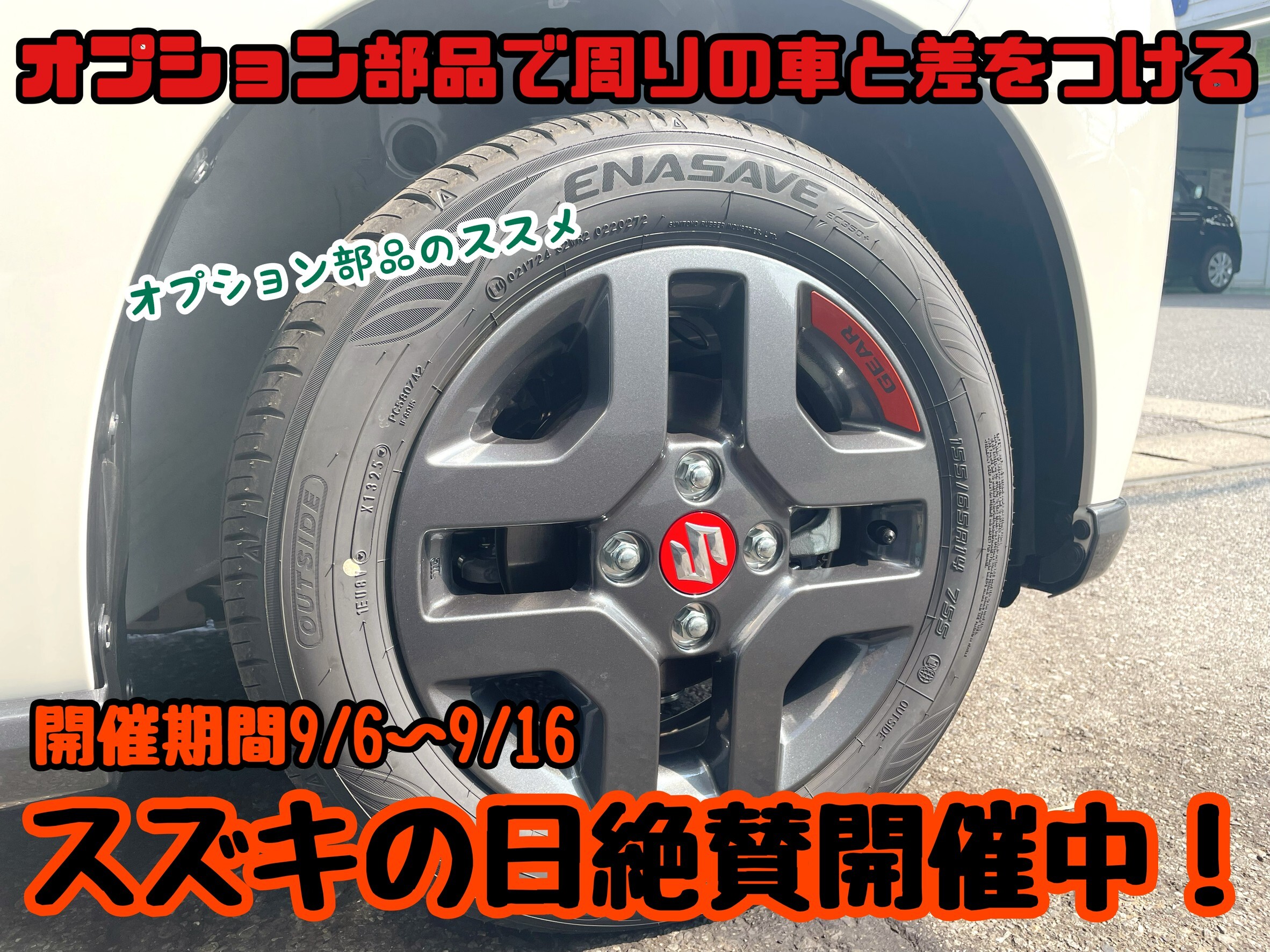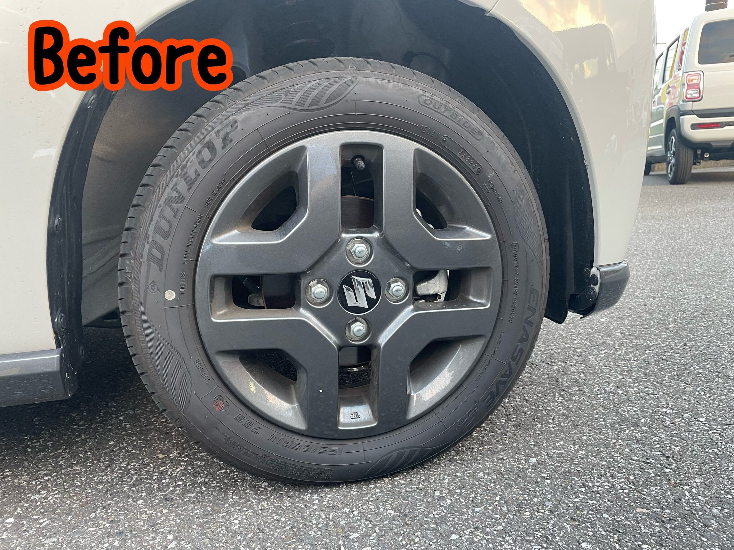 GSグレードは14インチアルミホイールが取り付けられます。
