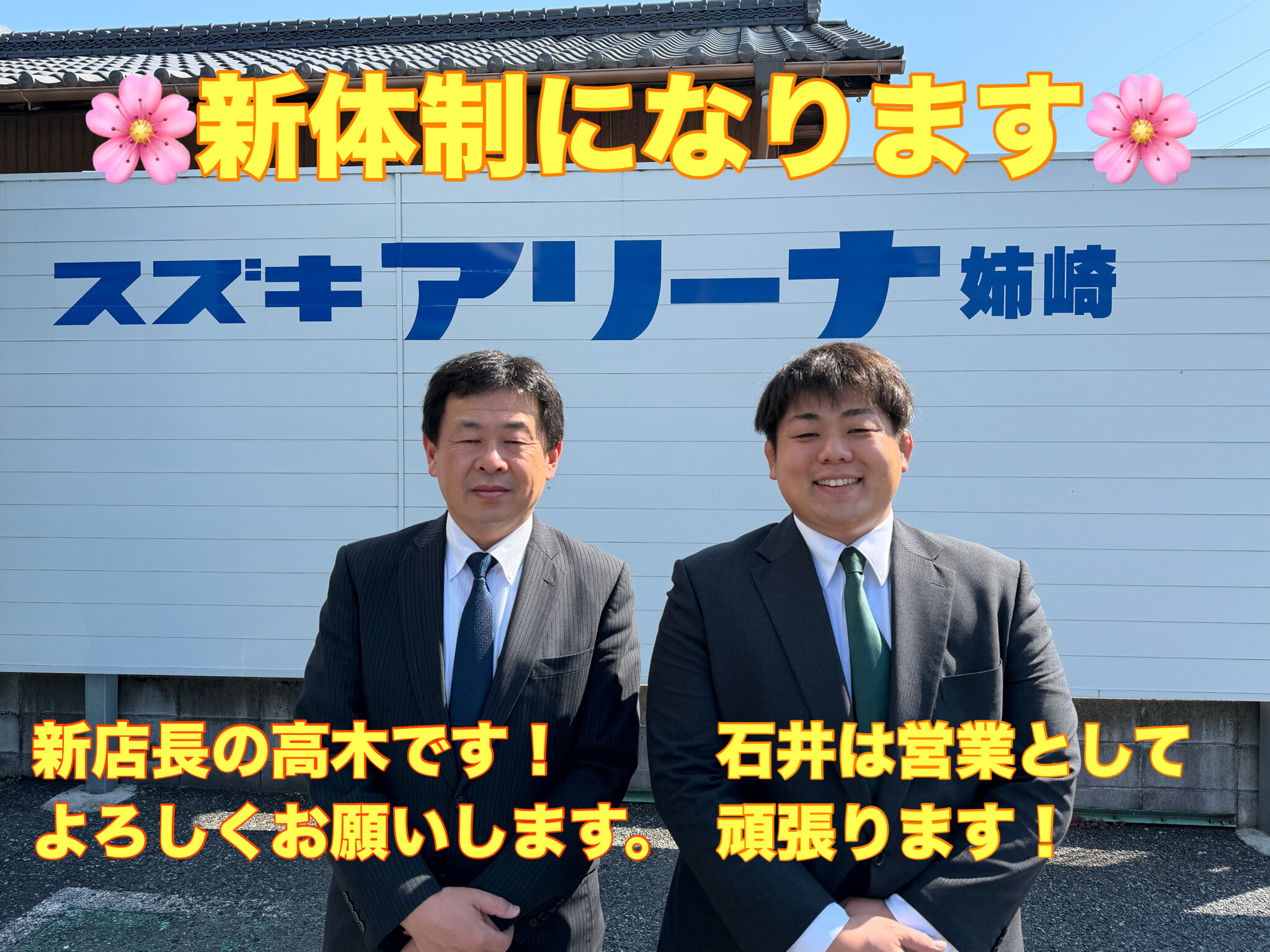 その他 2026.04.01 店長変更のご案内 日頃より、スズキアリーナ姉崎店をご利用いただき誠にありがとうございます 令和8年4月1日付で スズキアリーナ姉崎店の店長が 石井から 高木へ変更いたしました 急なご報告のため 取り急ぎこのブログにて ご報告をさせて頂きました 石井は営業スタッフとして姉崎店におります 今後もご利用いただきやすい 店舗を目指し努めて参ります 引き続きご愛顧のほど よろしくお願いいたします。