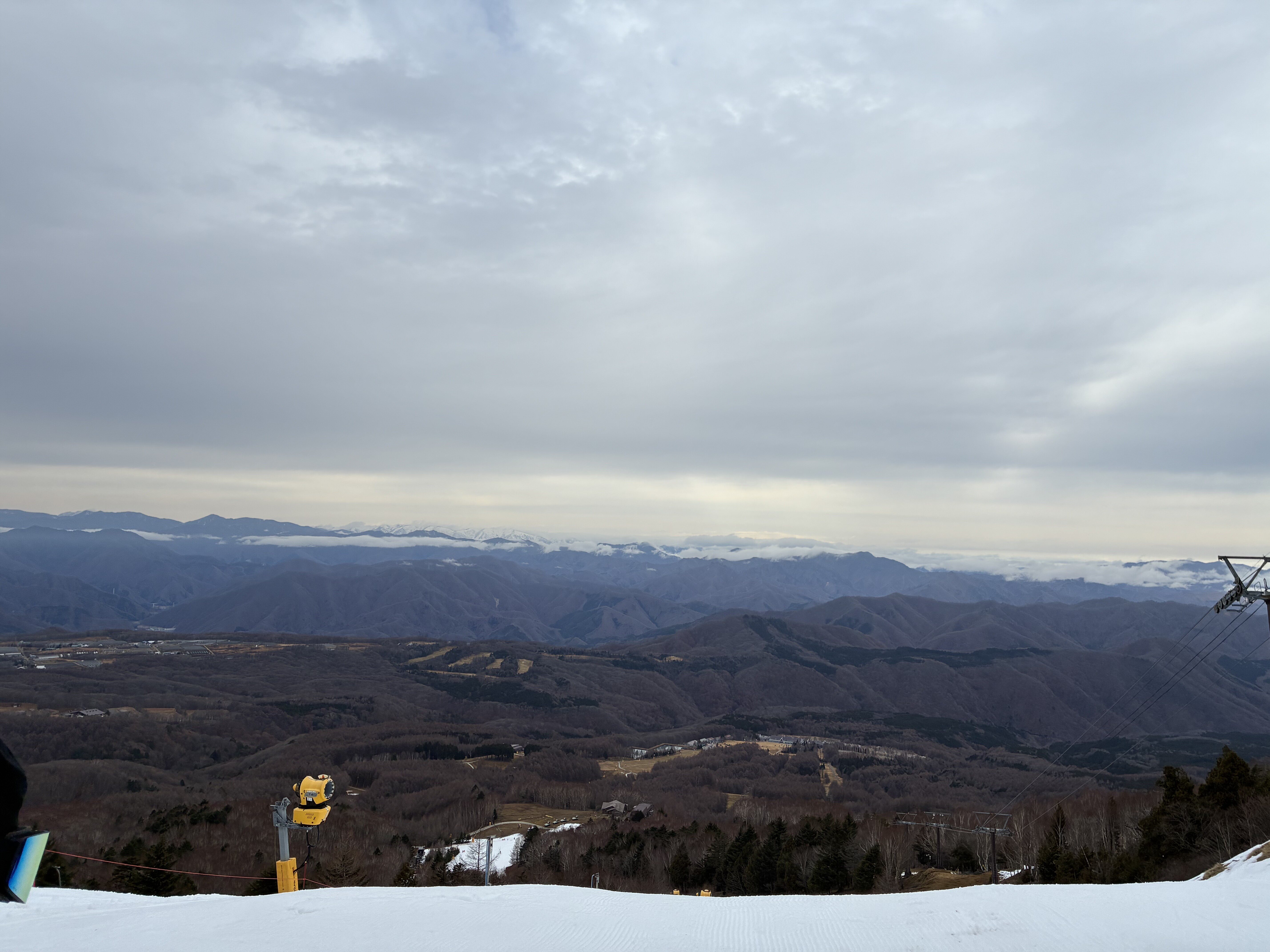 山頂は人工降雪機で滑れましたが